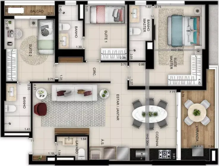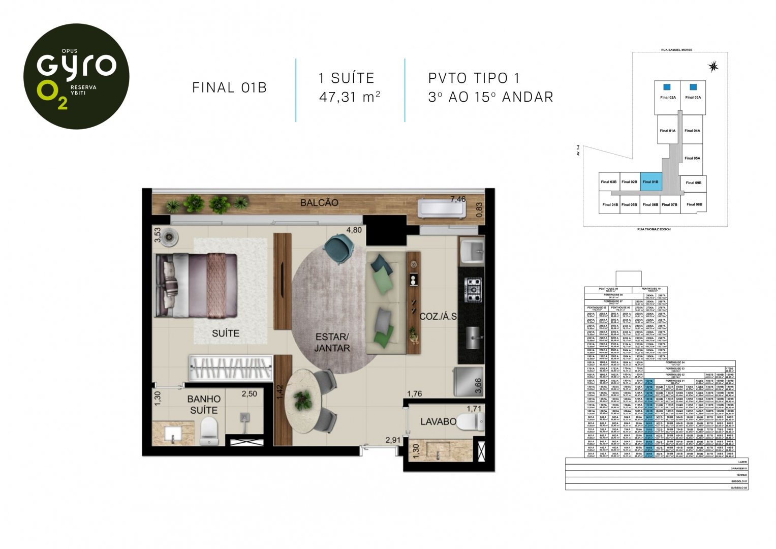 1, 2 e 3 Suítes