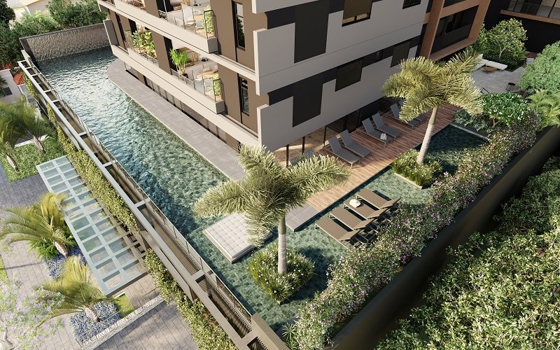Cada condomínio terá a sua própria área de lazer, incluindo com piscinas e paisagismo criando uma sensação de continuidade, como um verdadeiro resort de luxo.